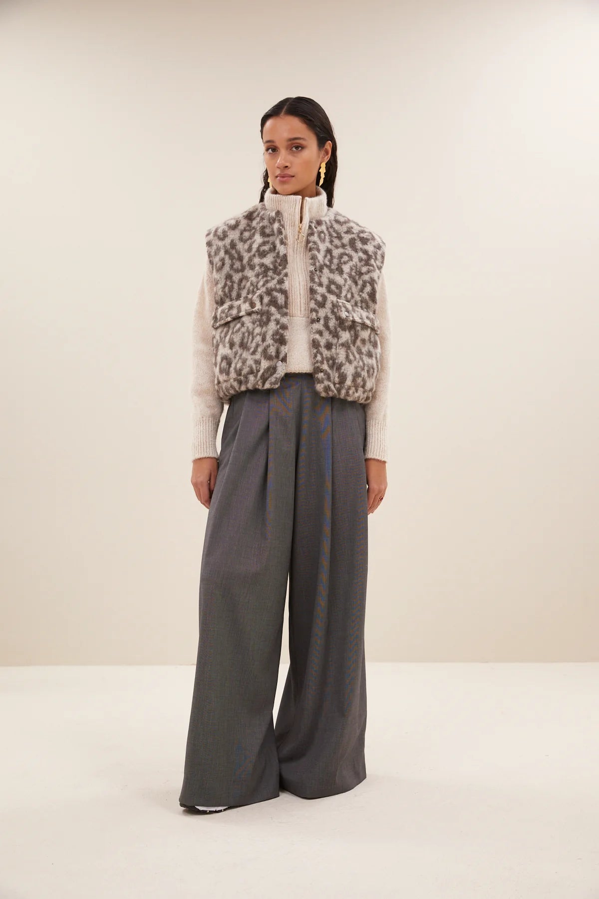 Le gilet sans manche "maggie" donne un look décontracté et sa coupe ample est confortable. Grâce à la fermeture à boutons-pression, vous restez élégante. La bande élastique en bas et le mélange de laine offrent une douceur agréable, tandis que les poches latérales pratiques gardent vos essentiels à portée de main. Parfaite pour tous les jours !